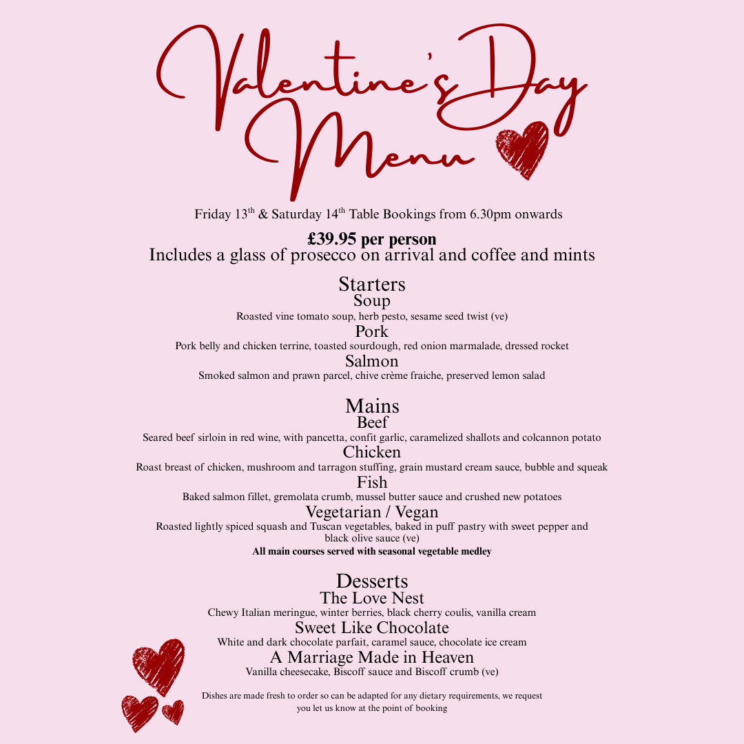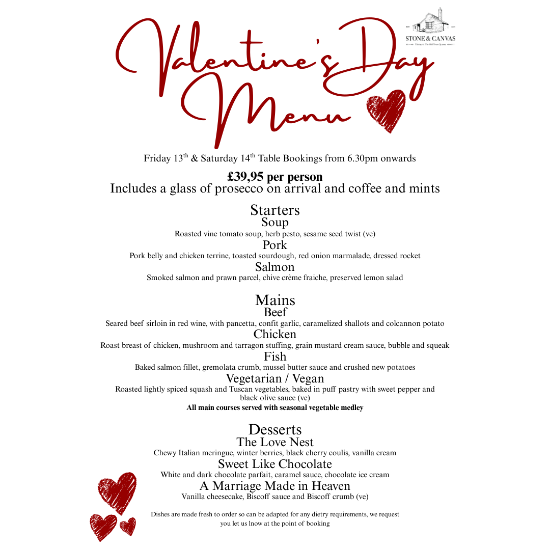 Take a seat, slow things down, and let us take care of the rest. Our three course meal is designed to be enjoyed from start to finish with thoughtfully prepared dishes, comforting flavours and a cosy space to linger a little longer. Bookings available from 6.30pm onwards on both Friday 13th and Saturday 14th of February. To book, please either contact us via our social media platforms, ring our café on 01934 753088 or click the button below to enquire via email